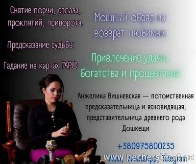 Анжелика Вишневская — ясновидящая с семейным даром, которая помогает людям справляться с такими трудностями. Она не обещает чудес, а работает так, чтобы результат был настоящим и безопасным. Помощь можно получи
